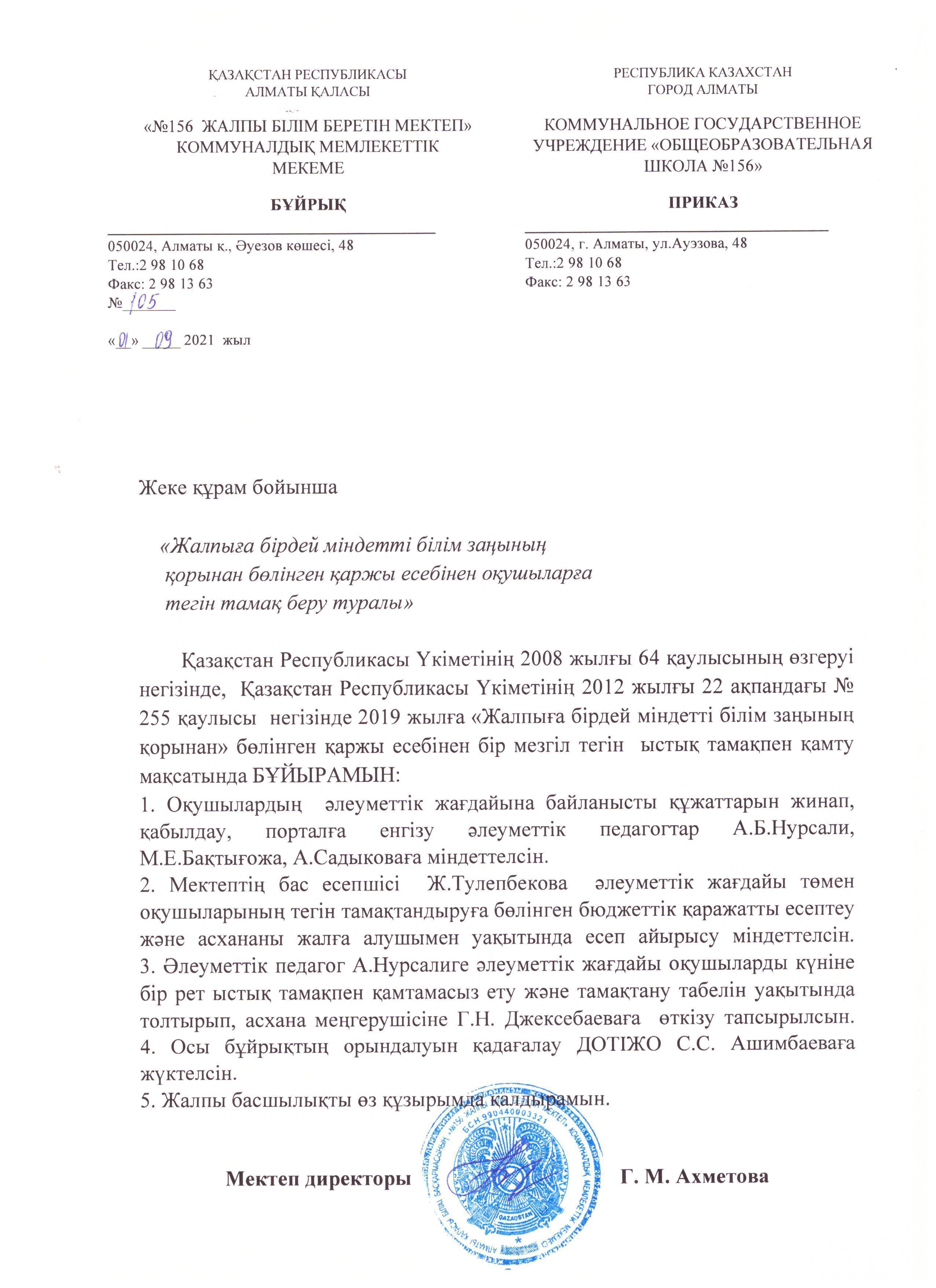 02 сентябрь 2021 0 1 2 3 4 5 Тегін ыстық тамақ берілу жөнінде бұйрық Осы беттің QR-коды:QR-код этой страницы: