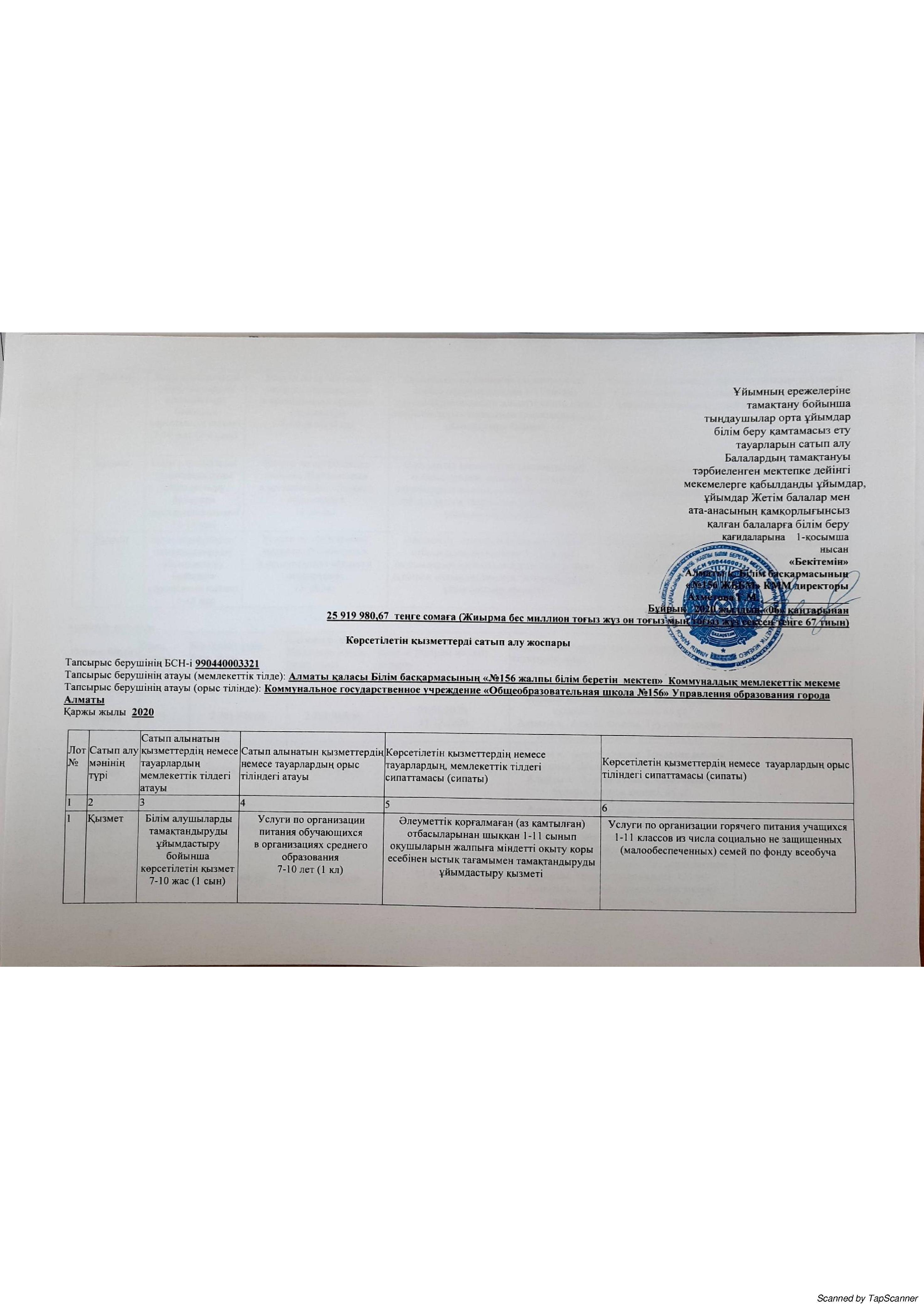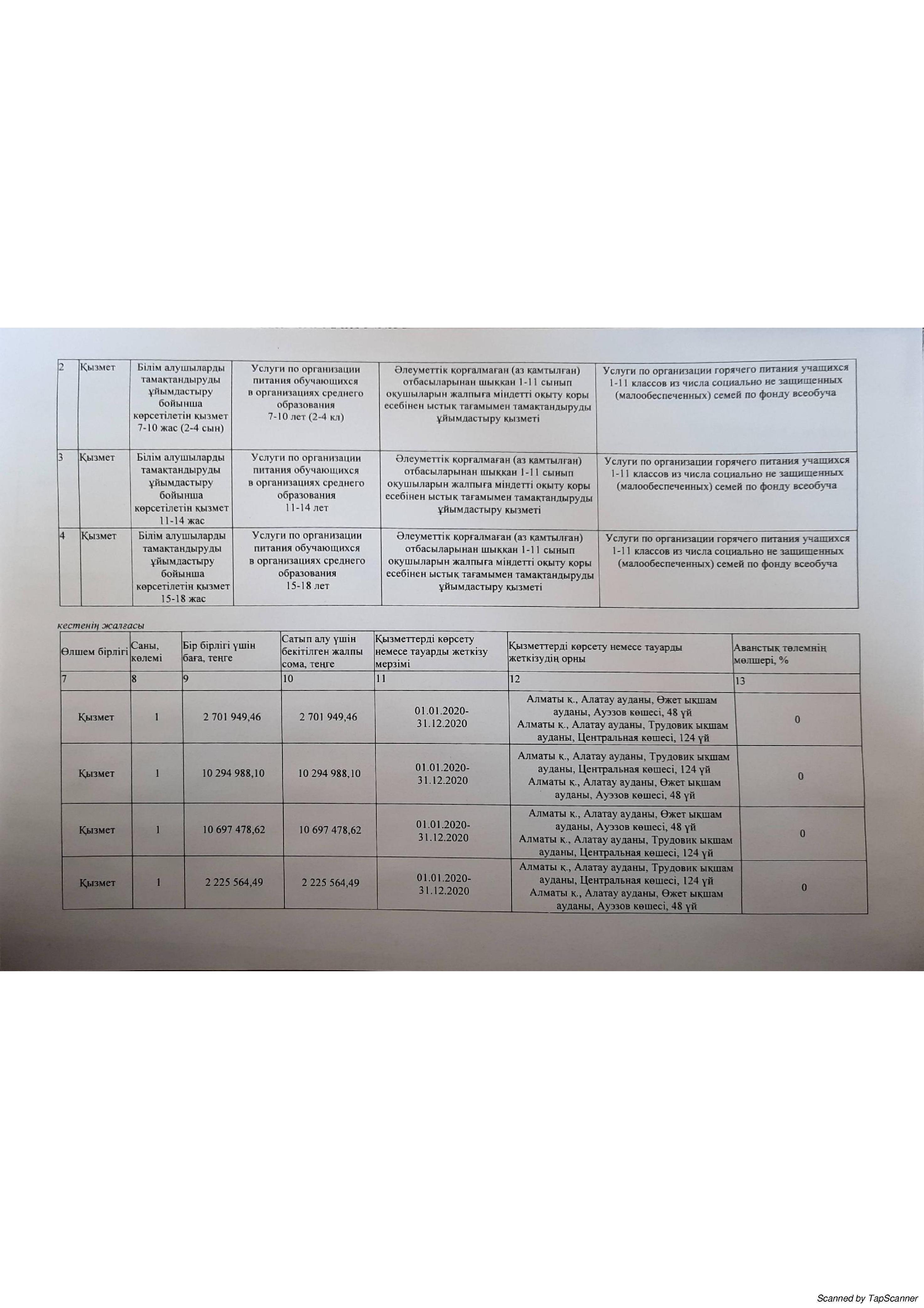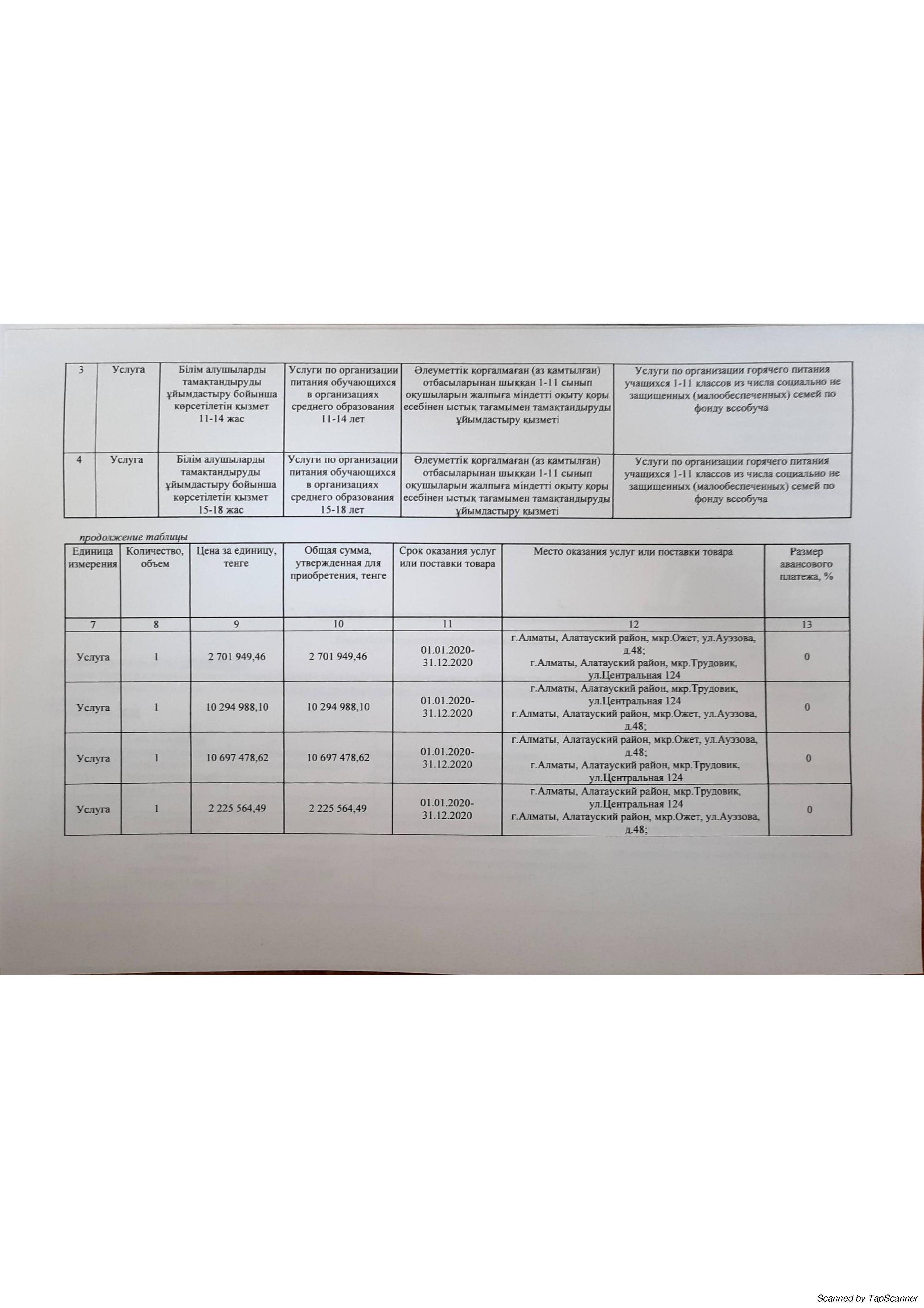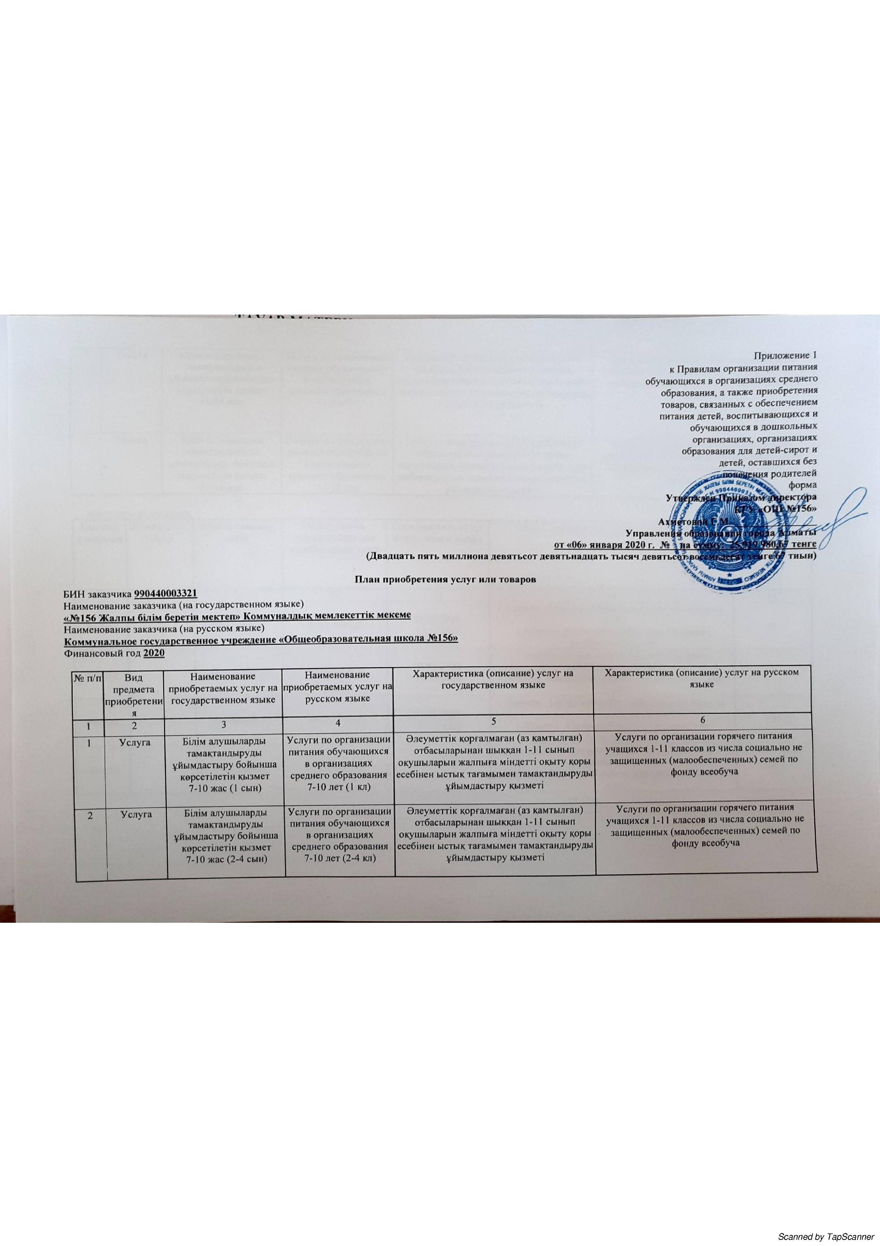 » План приобретения услуг 2020