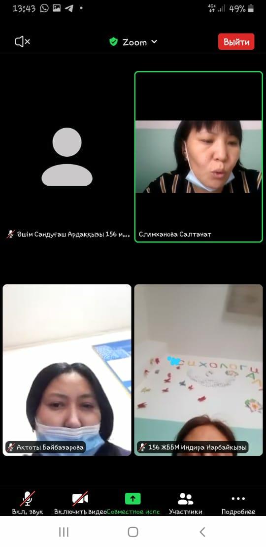 17.10.2020ж 8-11 сынып оқушылары үшін онлайын форматта «Біз өз проблемаларымыз туралы» сынып сағатын өткізді, сынып сағатында қоғамдағы зорлық-зомбылыққа байланысты өзекті мәселелерді талқылады.