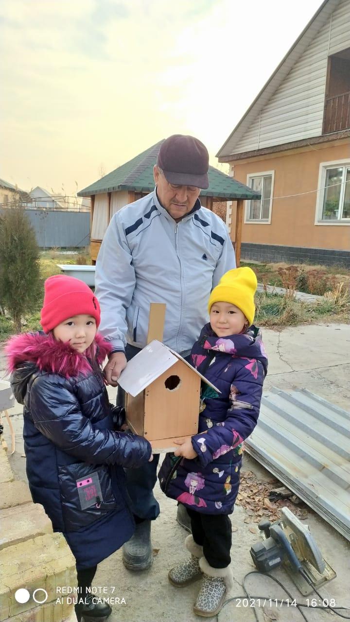 1 “Г” сынып оқушылары “Құстар- біздің досымыз” тақырыбы аясында үйлерінде ата-ана, аға-әпкелерінің көмегімен қыстап қалатын құстарға ұя жасап, ағаш басына ілді. Оқушылардың жасаған ұясы құстарға қыста нағыз пана болары сөзсіз.
