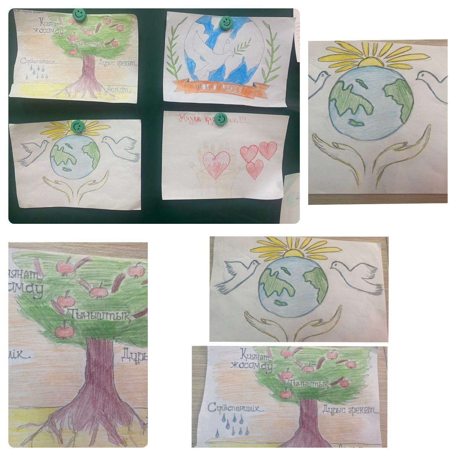 №156 жалпы білім беретін мектеп » Іс-шаралар » №156 ЖББ мектепте 23 қараша- Жалпыадамзаттық Құндылықтар күнін өткізу аясында 18.11.2021 күні 7-сынып оқушыларының арасында «Жалпыадамзаттық құндылықтарға» арналған сурет байқауы ұйымдастырылды.