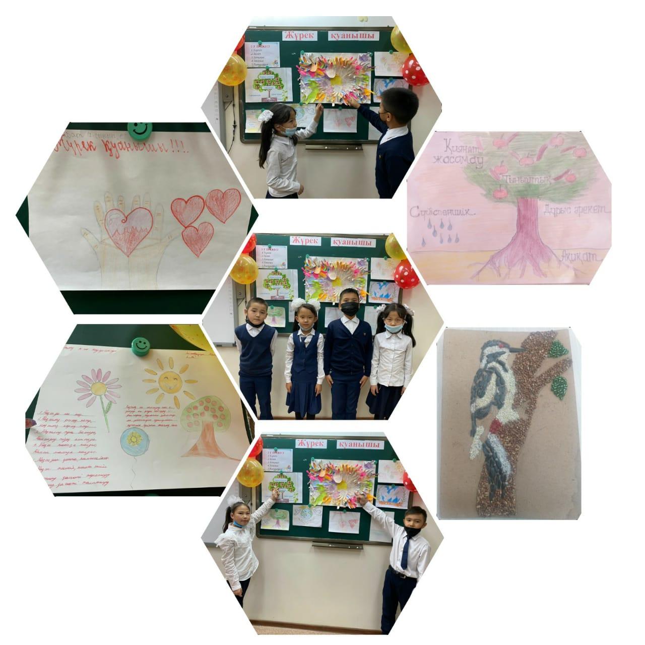 №156 ЖББ мектептің Қазақстан Республикасы Білім және ғылым министрлігінің тапсырмасымен өткізілетін Жалпыадамзаттық Құндылықтар күнін өткізу аясында 19.11.2021 күні 4-сынып оқушыларының арасында «Жүрек қуанышы» атты шығармашылық жұмыстарының сурет