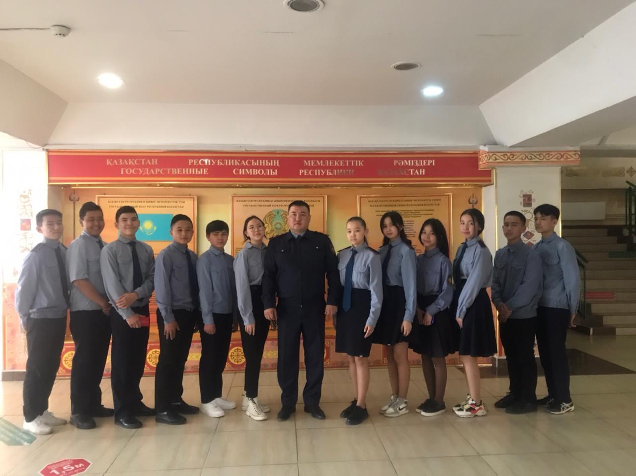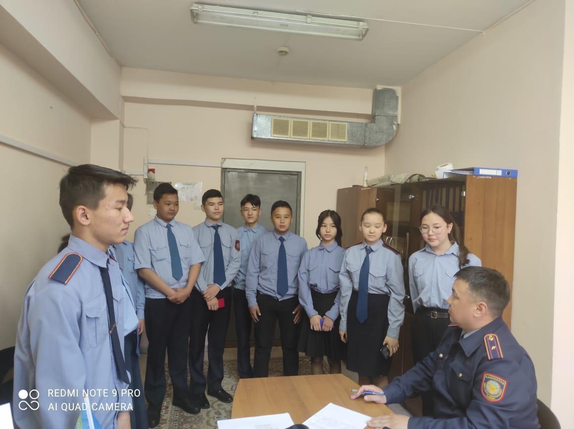 Мектебіміздің жас инспектордың көмекшілеріне құқықтық тәрбиенің өмірілік қажеттілігін оқушыларға түсіндіру. Құқықтық тәрбиенің, жігердің қоғамда маңызы зор екендігі түсіндіріп құқықтық сауатқа тәрбиелеу, өз ойларын еркін айтуға үйрету мақсатында ме