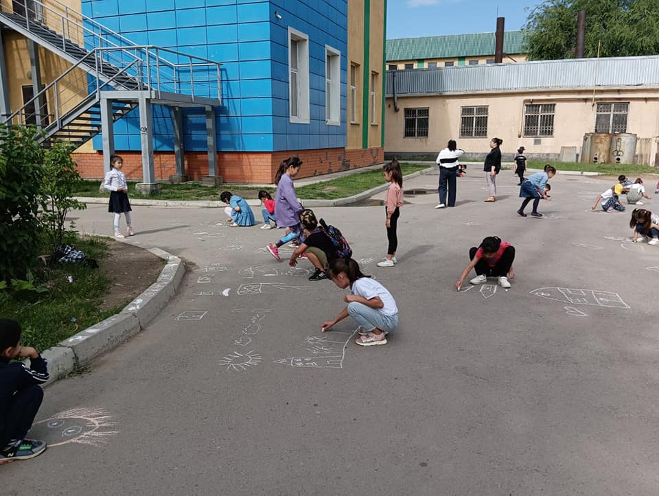 Мектеп жанындағы жазғы лагерьде, асфальтта сурет салу байқауы өтті. Мақсаты: балаларға мерекелік көңіл күй сыйлай отырып, олардың шығармашылық қабілеттерін дамыту. Сурет салуғa деген ынталарын артыру.