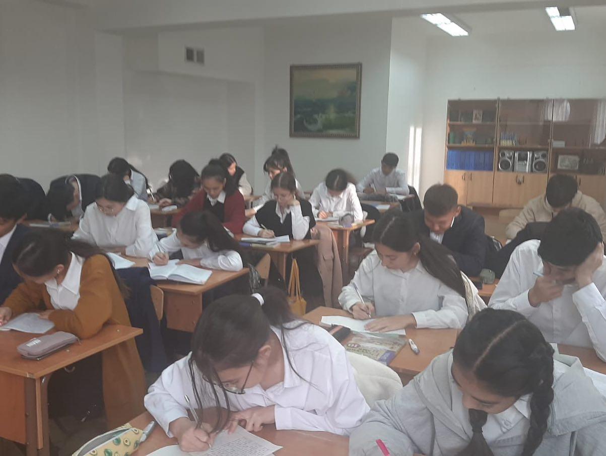 Алматы қаласы Білім басқармасы Республика күнін мерекелеуге арналған іс-шаралар жоспарына сәйкес бүгін мектебіміздің 8-11 сынып оқушылары жалпыреспубликалық патриоттық диктант жазды. Мектептерге оқыту тілі ескеріле отырып: 1. «Туған жер» – қазақ мек