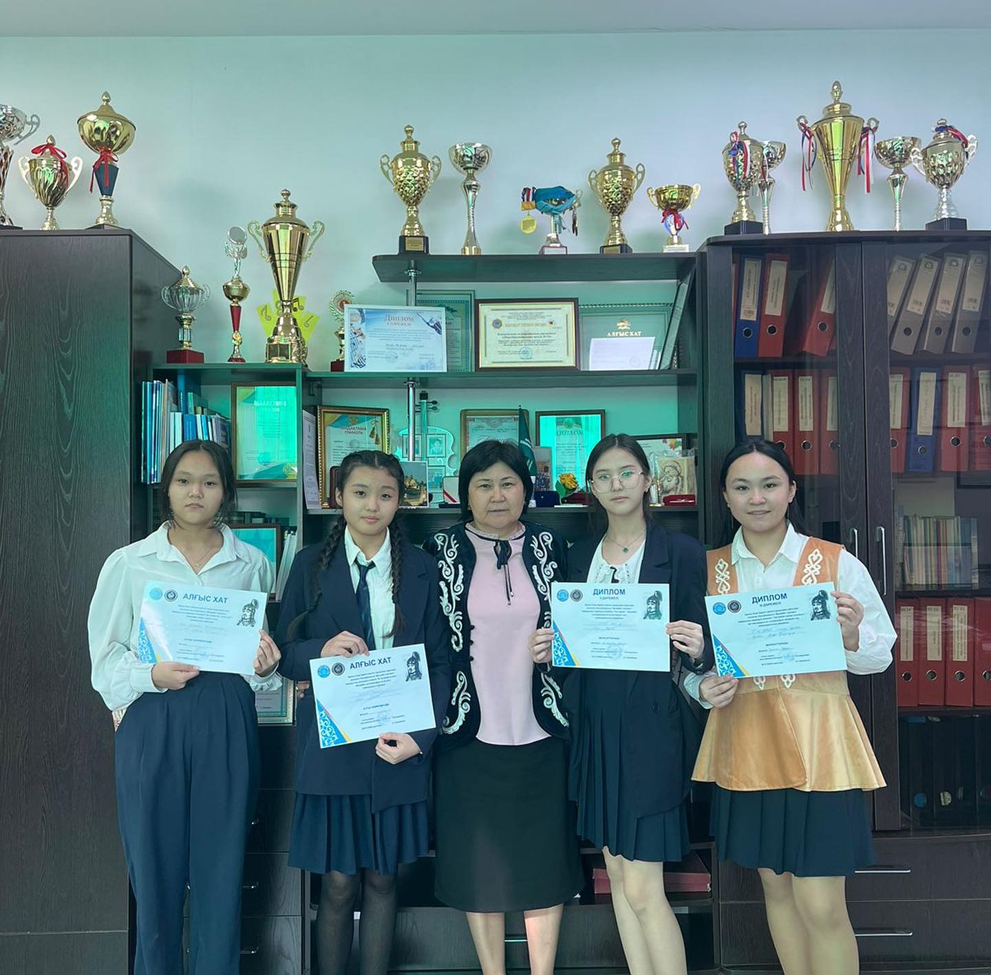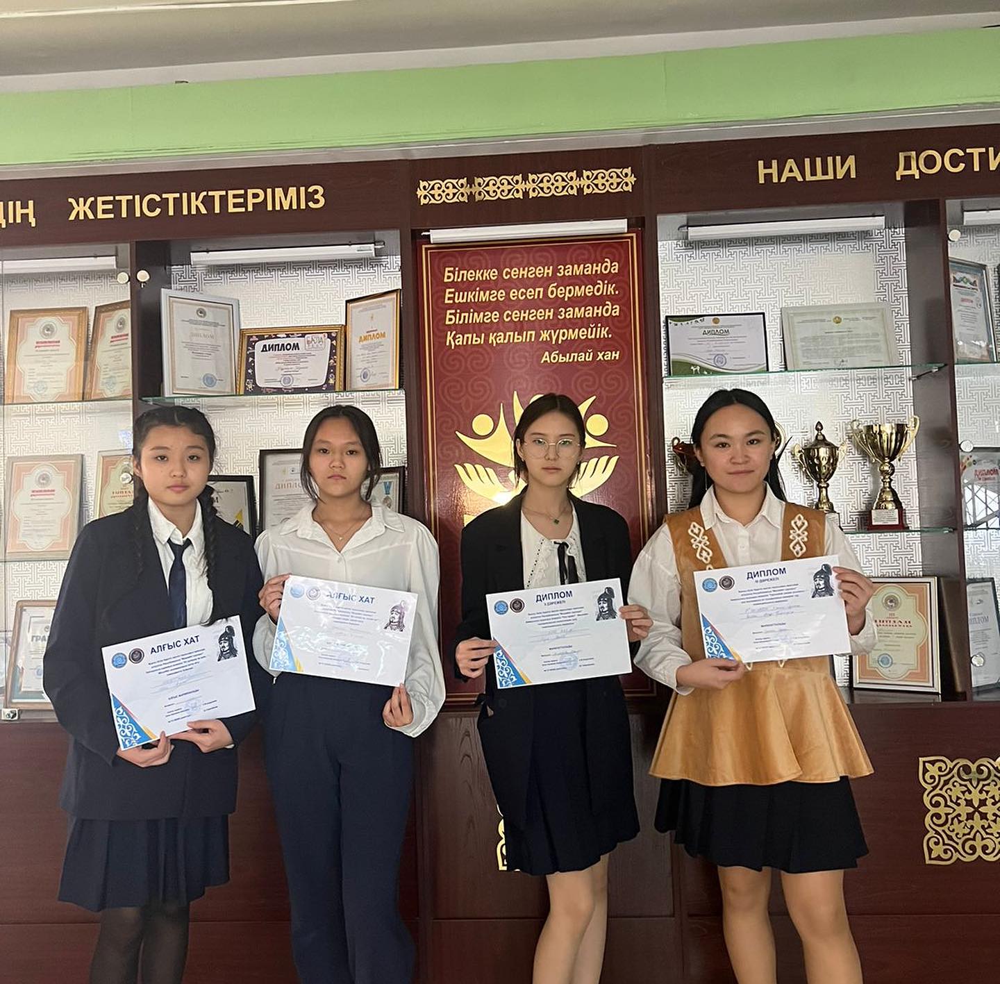РЕСПУБЛИКАЛЫҚ “МАХАМБЕТ ОҚУЛАРЫ” аудандық кезеңінің жеңімпаздары: ||| Дәрежелі ДИПЛОМ ӘДІЛХАН АЙНҰР Жетекшісі, Хуанған Н., АЛҒЫС ХАТ ӘБЕН ЕРКЕМАЙ ӘБЕН АЯЛА II Дәрежелі ДИПЛОМ .