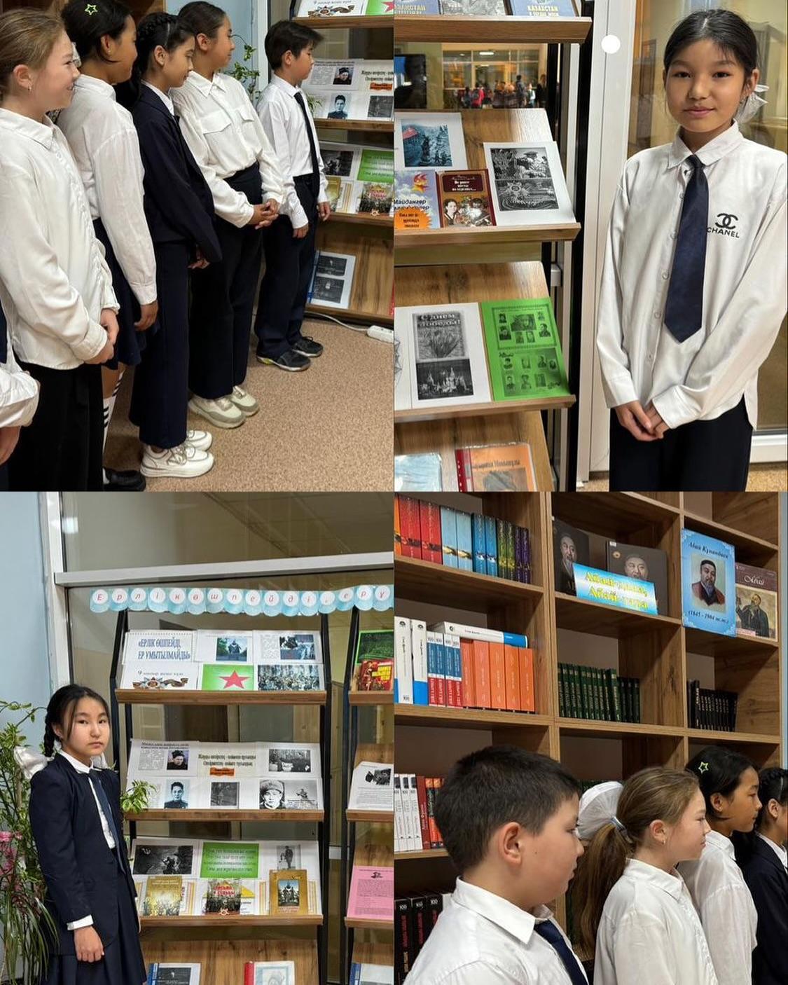 Aлматы қаласы,Алатау ауданы N 156 жалпы білім беретін мектеп кітапханасында Ұлы Отан соғысының 79 жылдығына орай “Ұлы жеңіс-жасасын” атты 6-сынып оқушылары арасында іс- шара өткізілді. 🇰🇿Мақсаты: Балаларды Ұлы отан соғысындағы Қазақстандықтардың