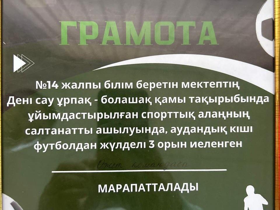 Nº14 жалпы білім беретін мектептің “Дені сау ұрпақ” - болашақ қамы тақырыбында ұйымдастырылған спорттық алаңның салтанатты ашылуында, аудандық кіші футболдан мектебіміздің мұғалімдері жүлделі 3 орын иеленді. 🇰🇿ҚҰТТЫҚТАЙМЫЗ! 🇰🇿ӘРҚАШАН СӘТТІЛІК Т