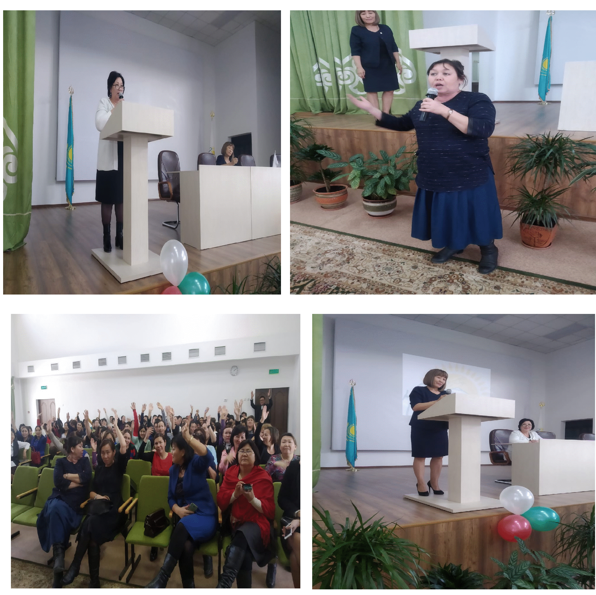 3. "Нұр Отан" партиясы Алатау аудандық филиалының кезектен тыс XVI конференциясына делегаттар сайлау. Конференцияны Достық партиясы төрайымы Ахметова Гульнара Мамбетовна ашты. Алатау ауданы саяси кеңес мүшесі Умарова Баян жиналыстың күн тәртібімен таныстырды."Нұр Отан" партиясының 20 жылдығы" . Жасампаздық және әлеуметтік даму кезеңі туралы баяндаманы тарих пәні мұғалімі Қорғанбаева Алия оқыса, орыс тілінде Даулеткалиева Динара оқыды. Біздің мектептен "Нұр Отан" партиясы Алатау аудандық филиалының кезектен тыс XVI конференциясына екі делегат сайланды: 1. Жылқайдарова Гулжанат