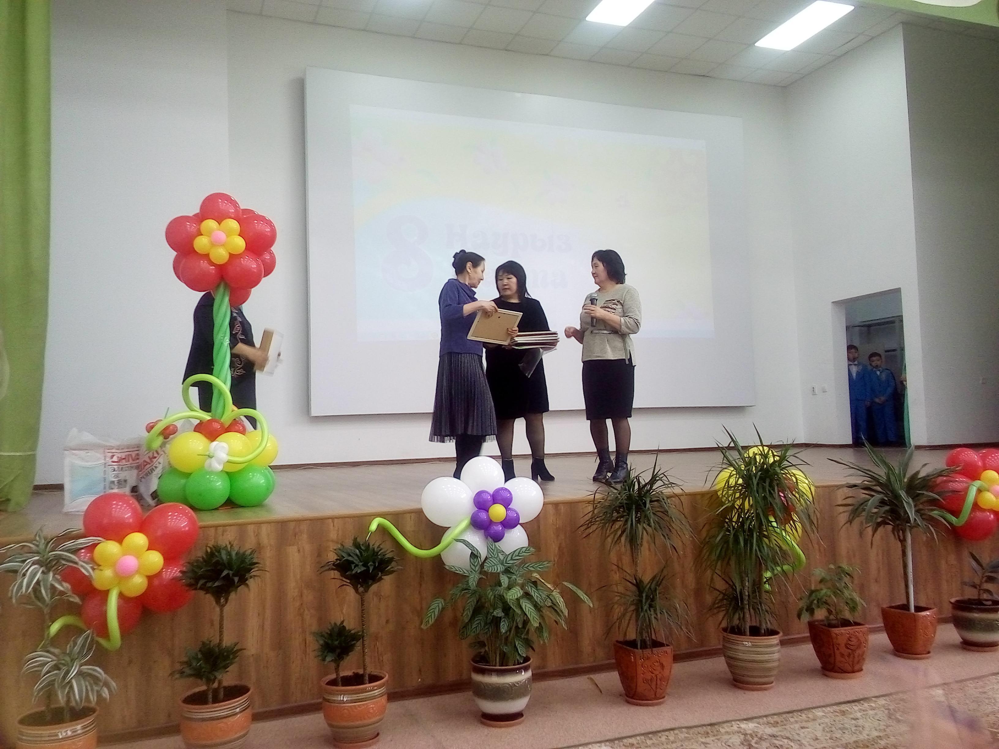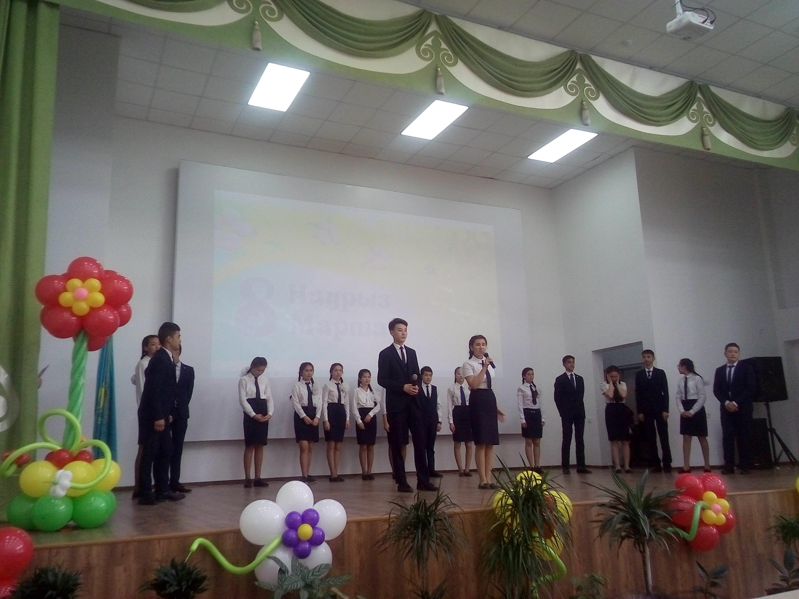 Бүгін мектебімізде арнайы ұстаз қауымын арнайы мерекемен құттықтадық. Аяулы аналар, асыл әжелер, қызғалдақ қыздар. Көңілдеріңізге көктем шуағындай,сезім мен нұрқұйып 8-наурыз халықаралық әйелдер мерекесі де келіп жетті. Осынау көктем мерекесінің қай кезде де орны бөлек. Өйткені аналарға ыстық сезім, алғыс пен құрмет ешқашан сөнбек емес. Себебі, ана өмірдің гүлі көңілдің жыры әр отбасының алтын діңгегі. Ендеше көктемнің алғашқы күндеріне арналған ұстаздарға арналған мерекелік кеш өтті.