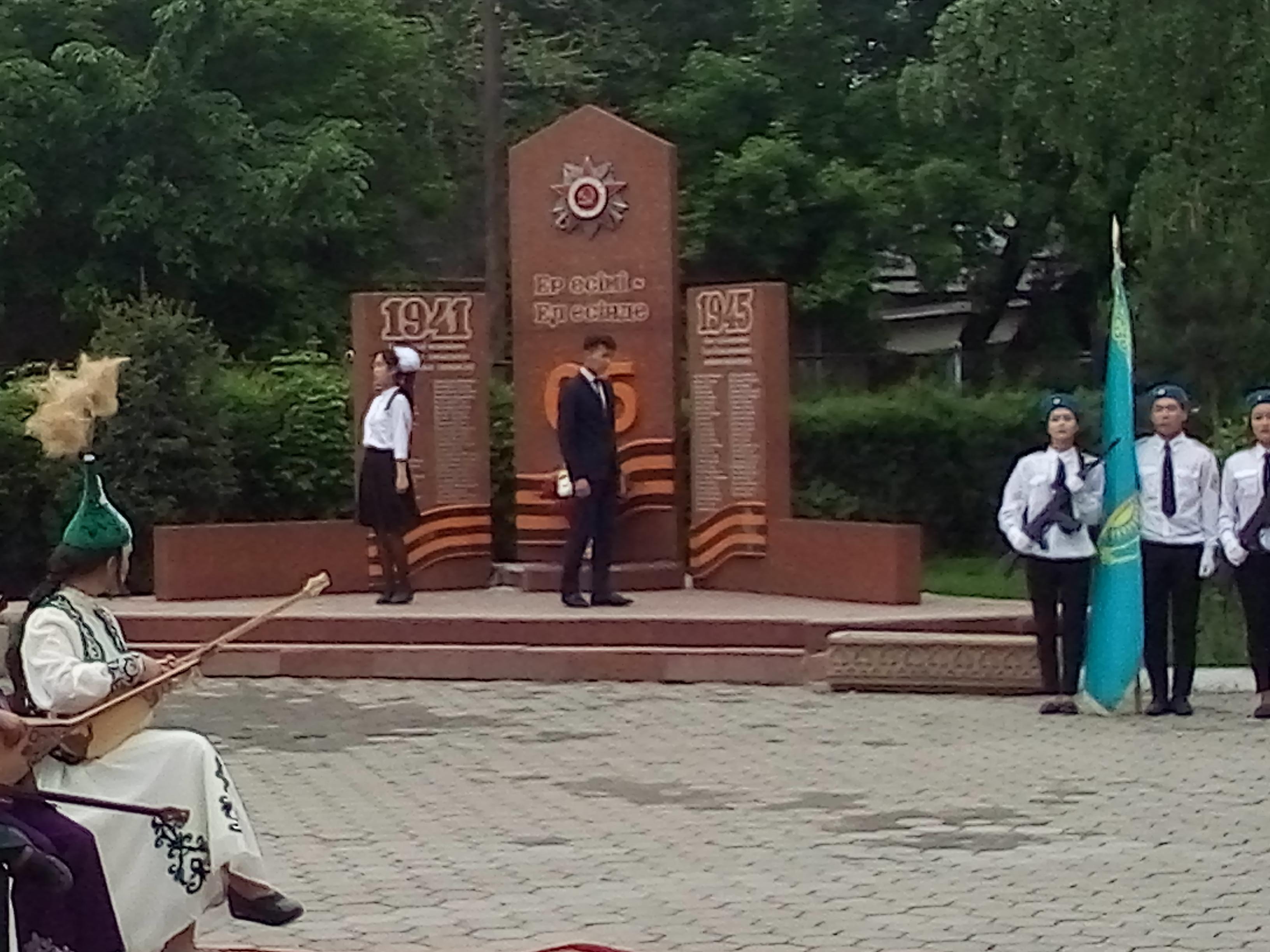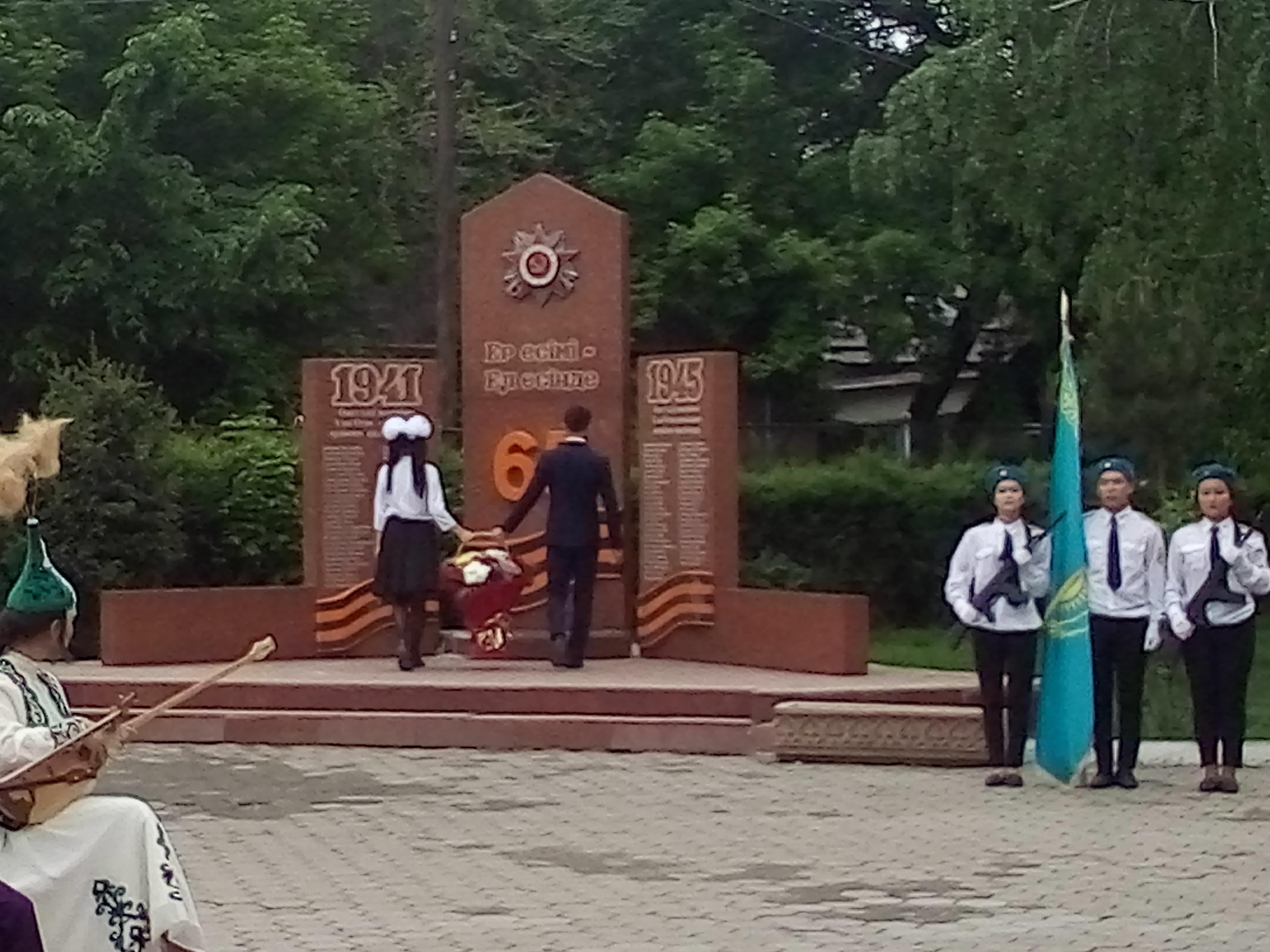 Ұлы Отан соғысының жеңіспен аяқталғанына 74 жыл өтті, Бұл сол кездегі кеңес халқының ержүректілігі мен төзімділіктерін паш ететін, тарихта қалатын күн. «Ер есімі –ел есінде» атты мектебімізде мерекелік іс- шара өтті. Тыл еңбеккерлерімен кездесу өткізілді. Іс- шараға мектеп әкімшілігі мен жергілікті өзін- өзі басқару комитеті мен ақсақалдар алқасы ат салысты. Мерекелік кештен соң, дастархан жайылып, үлкендерден бата алдық. Мектептің өнерпаздарды өз өнерлерін паш етті.