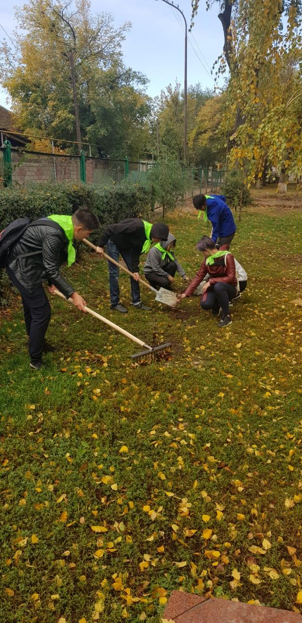 Мектеп алдына оқушылар сапқа тұрып, линейка өткізілді. Мектеп директоры, директордың тәрбие ісі жөніндегі орынбасарлары, оқушылар мен мұғалімдерді сенбілікке бір кісідей қатысуға шақырды. Оқушыларды техника қауіпсіздігі ережелерімен таныстырып, өздеріне бөлінген тазалау аумақтары туралы мәлімет берілді. Оқушылардың барлығы талапқа сай киінген, барлығы бір кісідей жасыл галстуктар тақты. Плакаттарға жазылған ұрандар болды. 2. 25 түп акация, вяз отырғызылды. 3. Субботникке мектеп ұжымы, оқушылары белсенді қатысты