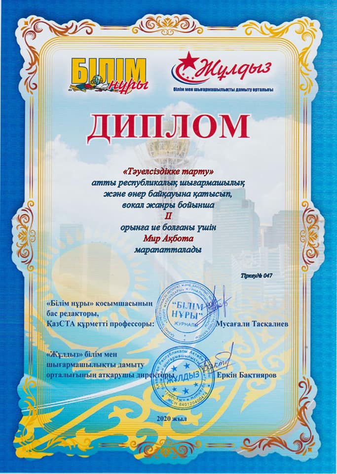 5-6 сынып оқушылары арасындағы қалалық олимпиаданың қазақ тілі пәні бойынша жүлдегері №156 жалпы білім беретін мектептің 5- сынып оқушысы Серікұлы Айсұлтан марапатталды. Жетекшісі Худайбергенова Арай. Құттықтаймыз!!!!!