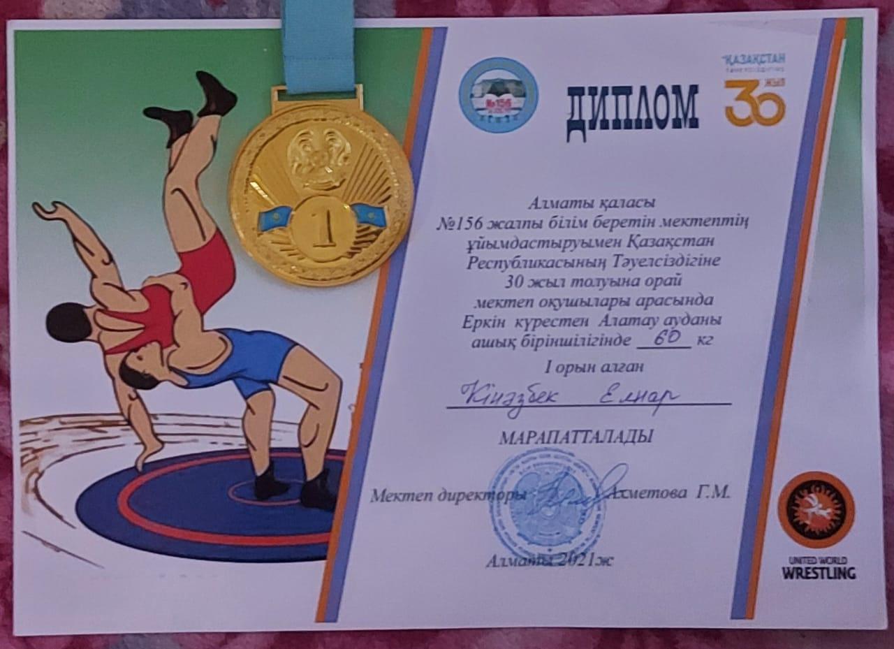 № 156 жалпы білім беретін мектепте ұйымдастырылған Қазақстан Республикасының Тәуелсіздігіне 30 жыл толуына орай Еркін күрестен Алатау ауданы біріншілігінде оқушыларымыз марапатталды. ҚҰТТЫҚТАЙМЫЗ!!!!!!