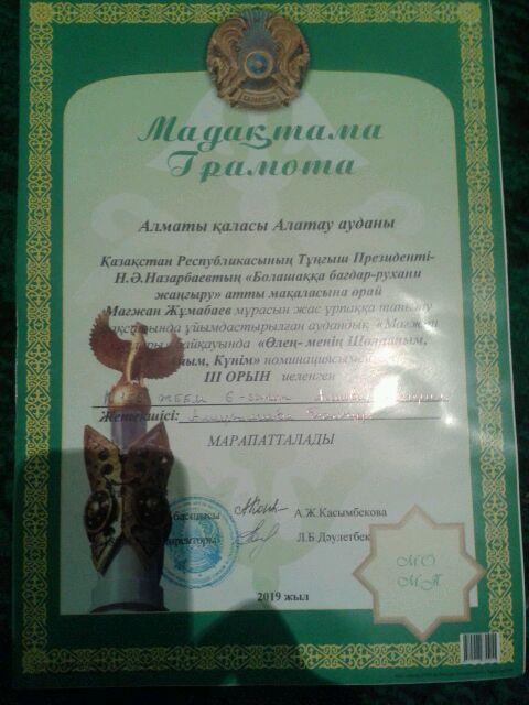 Аудандық "Абай оқуы" оқуынан " Өлең сөздің патшасы, сөз сарасы" номинациясынан мектебіміздің 9- сынып оқушысы Мейрамхан Бақжанар 70 өлең 1 поэма жаттап, бас жүлде алды. Қалаға аудан намысын қорғауға барады. Жетекшісі Сағымбаева Гулмира. Оқушымызға сәттілік тілейміз!!! "Мағжан оқуы" эссе байқауы мен аудандық арнаудан 8- сынып оқушылары Бейсенбаев Құралбай 3-орын, Атаназаров Нұрбол 2- орын алды, жетекшісі Сайлау Гулжамал. "Абай оқуы" мәнерлеп оқудан Әлиева Айгерім, жетекшісі Амиргалиева Балнұр. Ұстаздарымбен шәкірттерімізді шын жүректен құттықтаймыз!!!!
