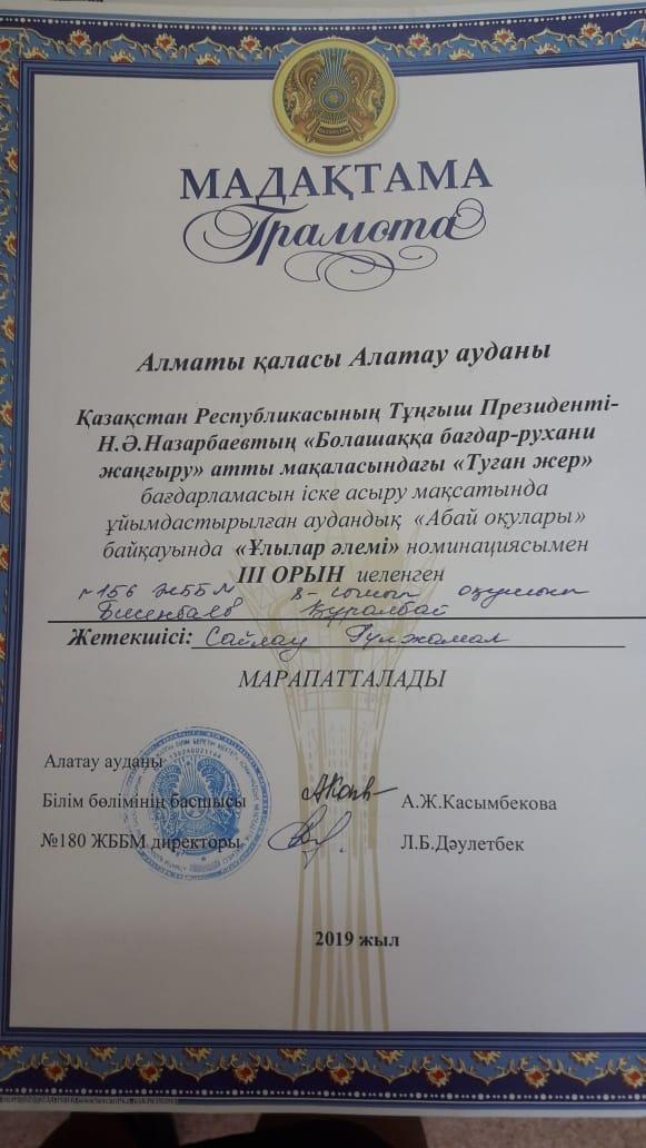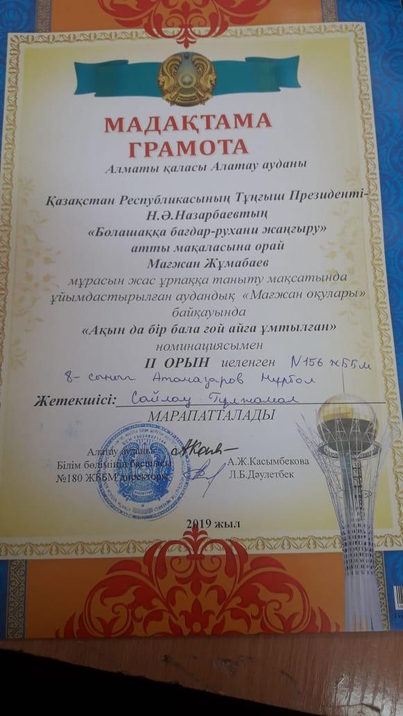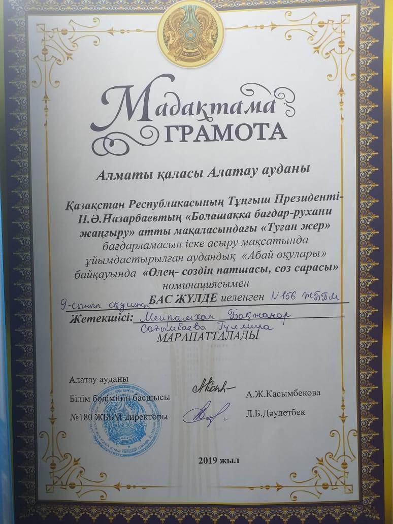 Аудандық "Абай оқуы" оқуынан " Өлең сөздің патшасы, сөз сарасы" номинациясынан мектебіміздің 9- сынып оқушысы Мейрамхан Бақжанар 70 өлең 1 поэма жаттап, бас жүлде алды. Қалаға аудан намысын қорғауға барады. Жетекшісі Сағымбаева Гулмира. Оқушымызға сәттілік тілейміз!!! "Мағжан оқуы" эссе байқауы мен аудандық арнаудан 8- сынып оқушылары Бейсенбаев Құралбай 3-орын, Атаназаров Нұрбол 2- орын алды, жетекшісі Сайлау Гулжамал. "Абай оқуы" мәнерлеп оқудан Әлиева Айгерім, жетекшісі Амиргалиева Балнұр. Ұстаздарымбен шәкірттерімізді шын жүректен құттықтаймыз!!!!