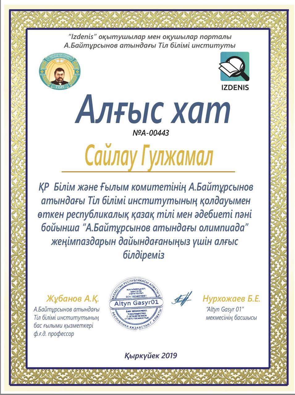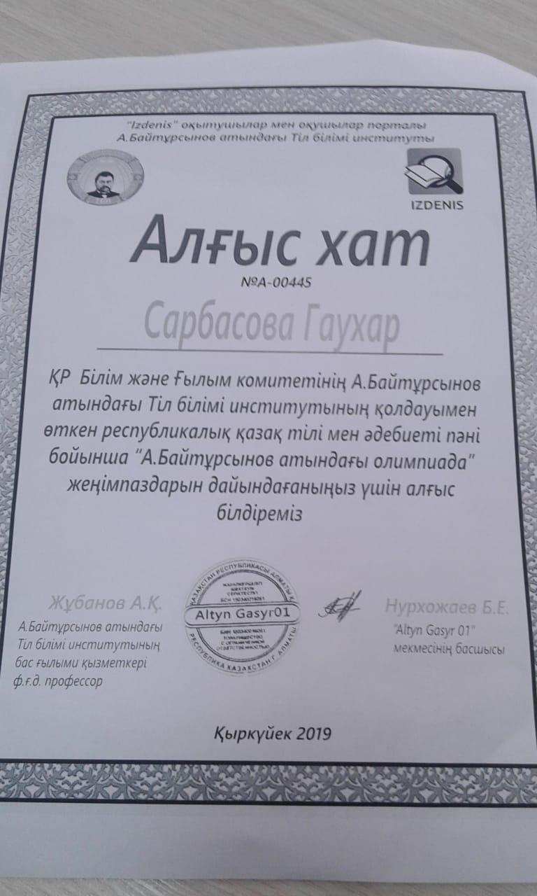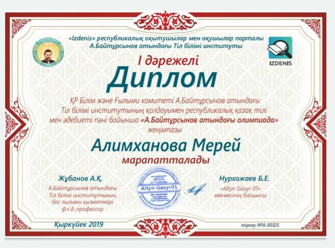 #156ЖББМҚР Білім және Ғылыми комитеті А. Байтұрсынов атындағы Тіл білімі институтының қолдауымен өткен республикалық қазақ тілі мен әдебиеті пәні бойынша "А. Байтурсынов атындағы олимпиада" жеңімпаздары Булекова Ж, Халым Д, Алимханова М, Асетов Н, Тілейхан А, ұстаздарымыз I, II дәрежелі дипломмен марапаталды, құттықтаймыз!!!!