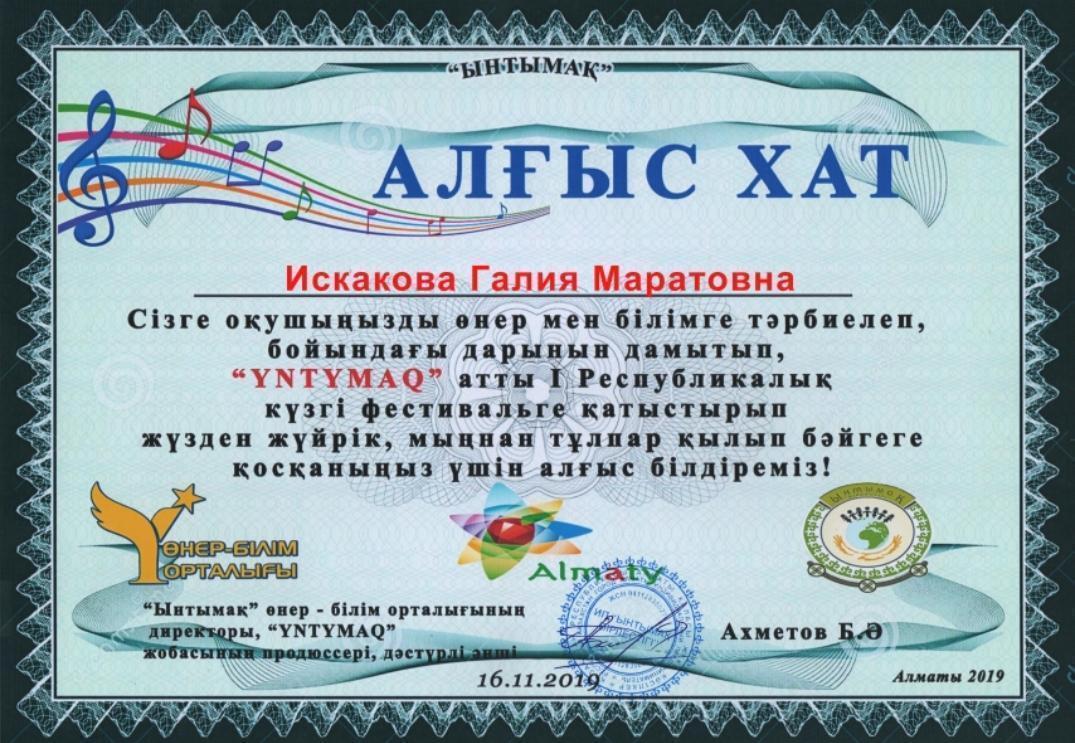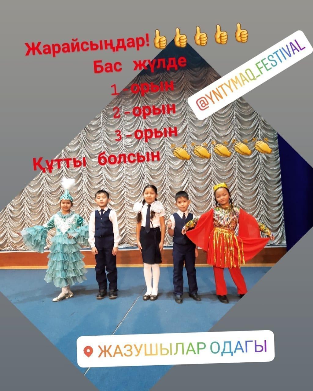 Алғашқы рет Алматы қаласында ұйымдастырылған 1- Республикалық "Ынтымақ " күзгі фестиваліне №156 жалпы білім беретін мектептің 3 "А" сынып оқушылары қатысып, жүлделі орындар алды. Атап айтсақ бас жүлдені Битуған Мирасиеленді, 1- орынды Орақбай Ермек, Шарипова Динара, 2- орынды Сембек Қарақат, 3- орынды Калкен Айсерік иеленді. Сынып жетекшісі Искакова Галия "Үздік жетекші" номинациясы бойынша марапатталып, алғыс хат алды, оқушыларымызбен жетекшісін шын жүректен құттықтаймыз!!!!!