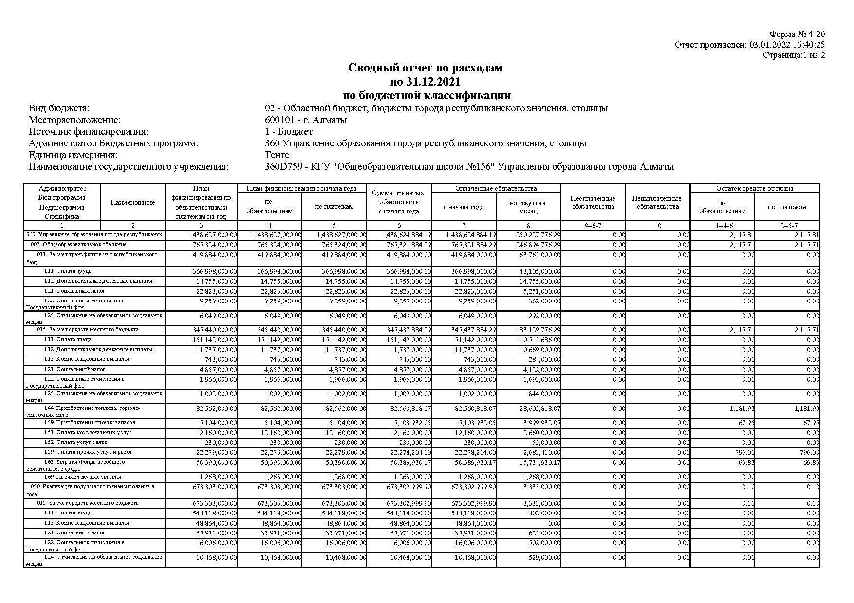 31 декабрь 2021 0 1 2 3 4 5 Сводный отчет по расходам по 31.12.2021 Осы беттің QR-коды:QR-код этой страницы: