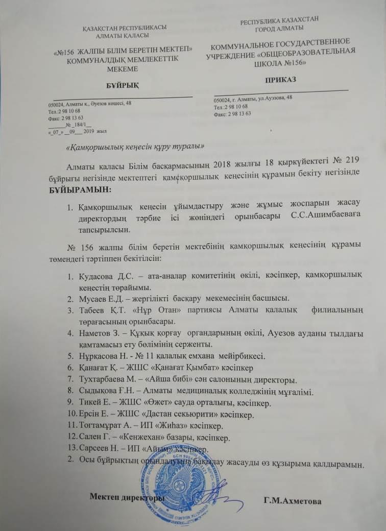 07 сентябрь 2019 0 1 2 3 4 5 Бұйрық Қамқоршылық кеңесін құру туралы Осы беттің QR-коды:QR-код этой страницы: