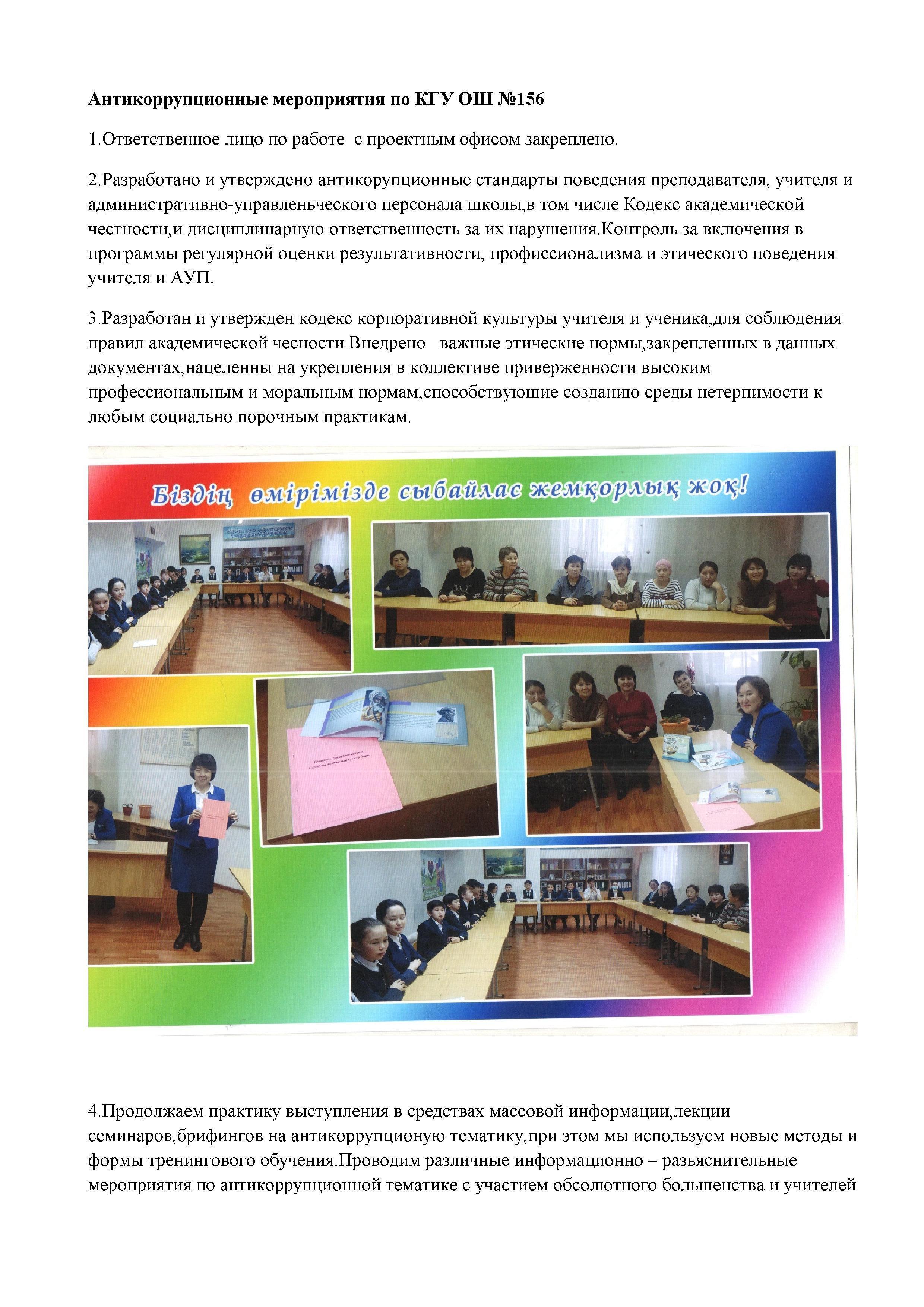 11 январь 2019 0 1 2 3 4 5 Антикоррупционные мероприятия по КГУ ОШ №156 Осы беттің QR-коды:QR-код этой страницы: