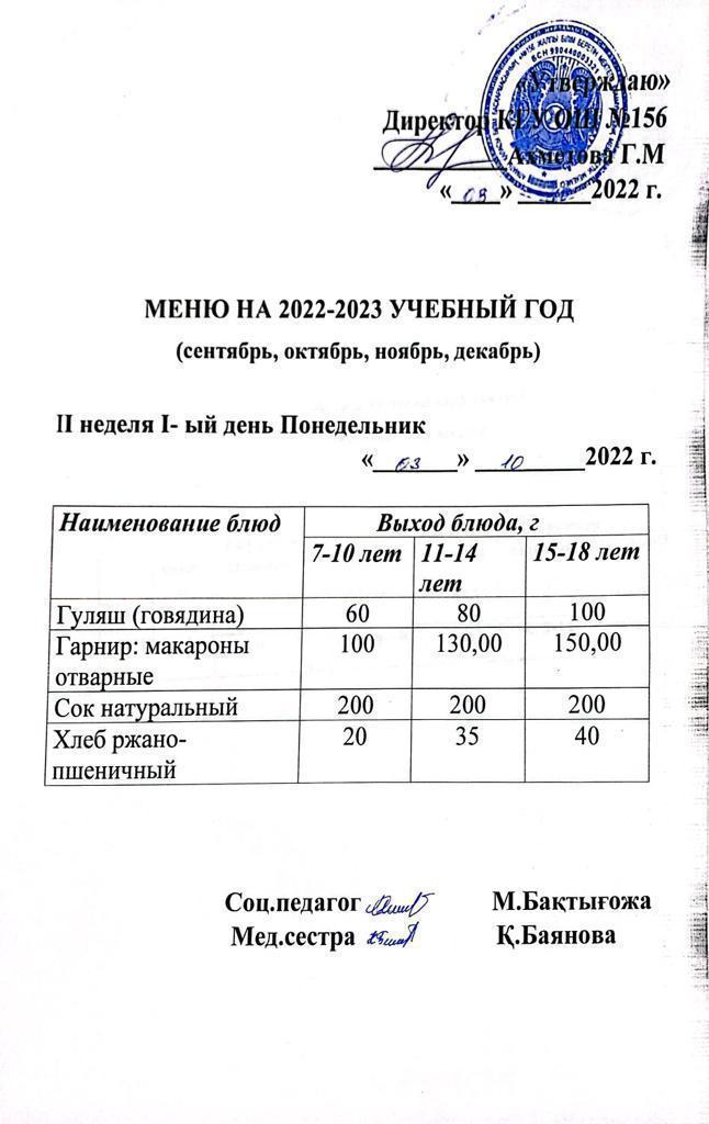 Тамақтандыруды ұйымдастыру жоспары 2025-2026